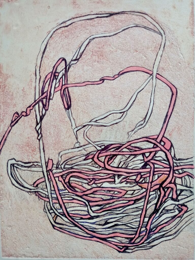 Radierung überzeichnet Mischtechnik, 50×70 cm, 2023
