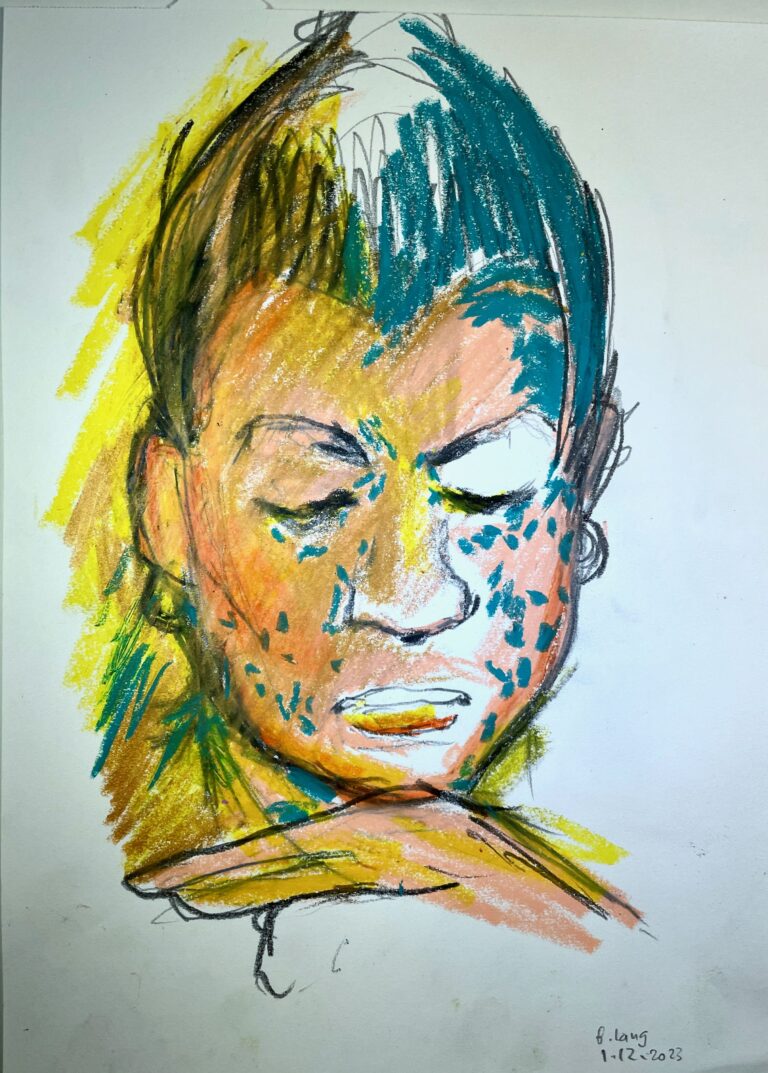 Monotypie überzeichnet, Mischtechnik , 45×35 cm, 2023