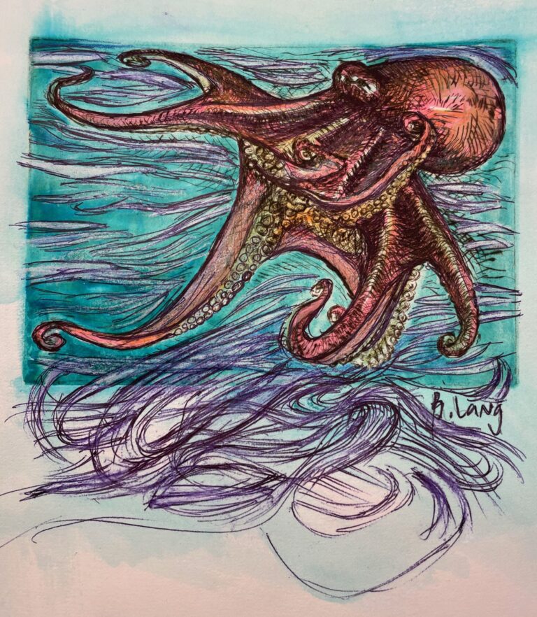 Druckgrafik überzeichnet, 30×20 cm, 2023