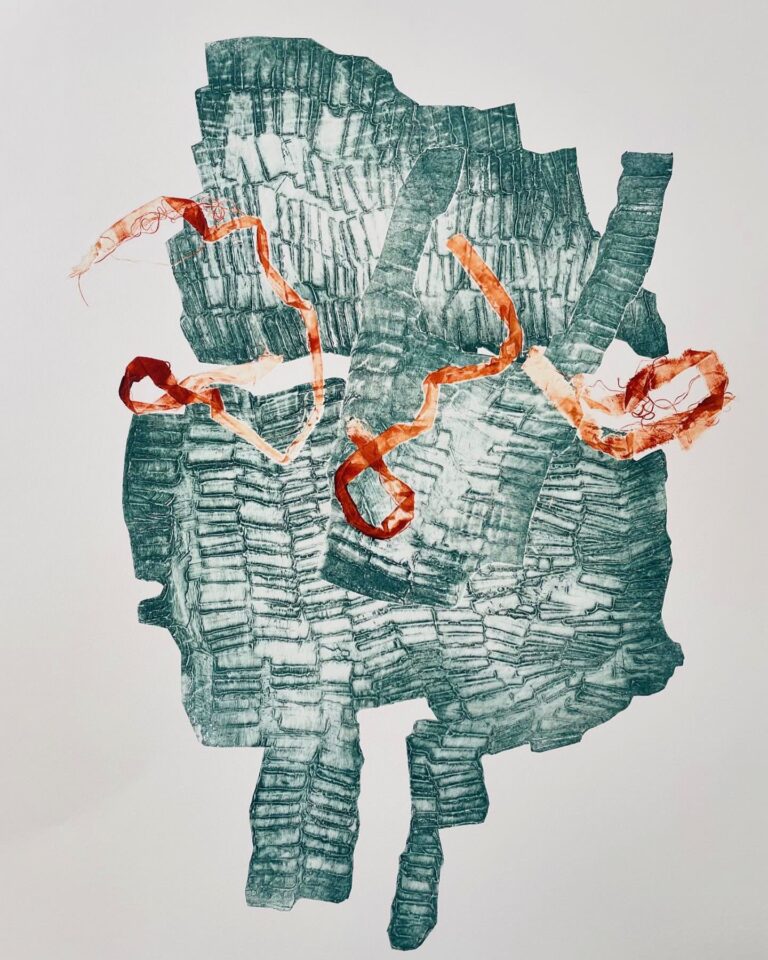 Strukturpaste + Materialdruck, Unikat, 50×60 cm